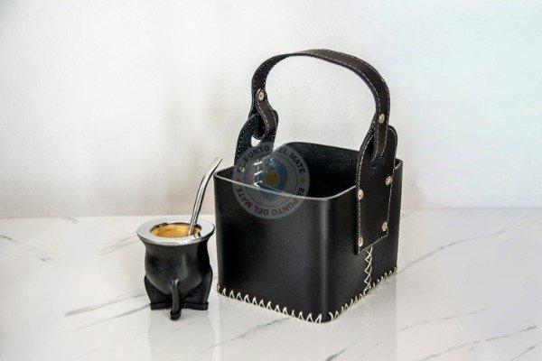 Matera de cuero vaqueta resistente y duradera, con diseño 4x4 que permite llevar mate, termo y accesorios de forma cómoda y segura. Interior forrado, costuras reforzadas y cierre firme. Ideal para el uso diario o salidas al aire libre, combinando estilo, tradición y funcionalidad.